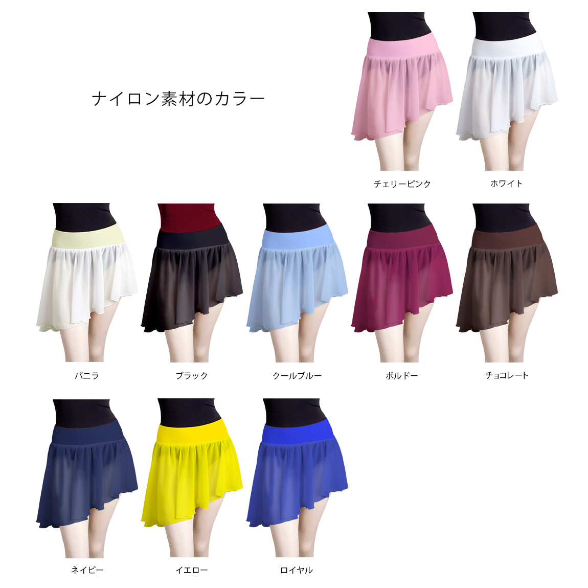 ホワイト(白) ブラック(黒) ピンク ブルー(青) ライトブルー(水色) ラベンダー(薄紫) パープル(紫) イエロー(黄) レッド(赤) グリーン(緑) バニラ 黄緑 ボルドー ガーネット チョコレート(茶) ネイビー(紺) |